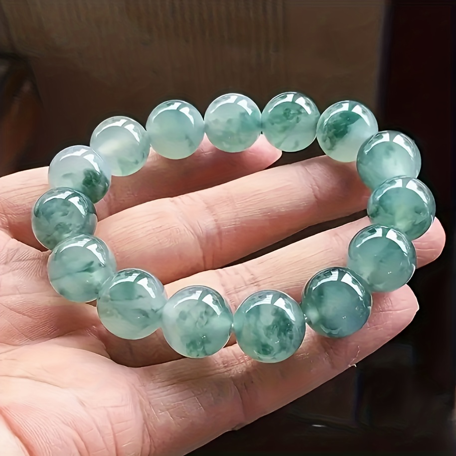 TEMU 10mm 왕차이 주얼리 자연 A등급 팔찌, 미얀마산 남녀공용 커플 아이시 스톤 팔찌 선물 (패턴은 랜덤으로 바뀝니다)