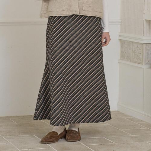 [위시드]사선 스트라이프 롱 플레어 스커트 (WICCSK009)