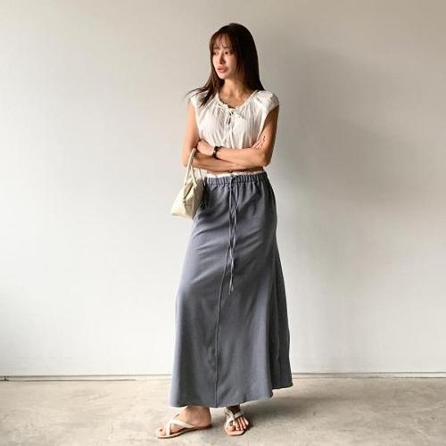 여성 h라인 스커트 미디/롱 2기장 빅사이즈 이지핏 밴딩스커트 봄 여름 가을