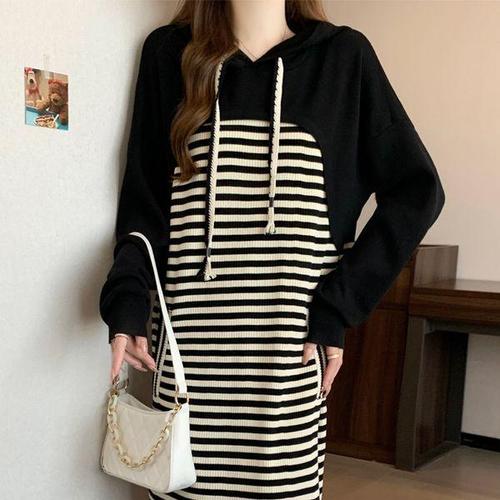 [랄라모션]스트라이프 후드 롱원피스(llm0370)