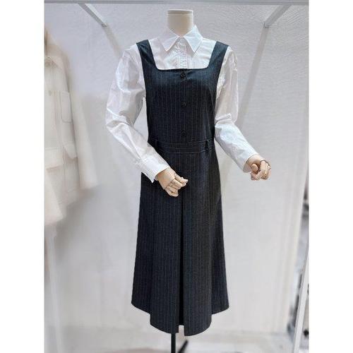 [르뚜앙]루즈민 하객룩 봄 가을 스트라이프 셔츠원피스 브이넥 셔링 슬림핏 롱원피스 오피스룩 결혼식 상..
