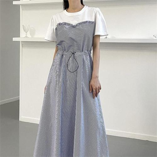 [오너클랜]인기상품 여성용 반팔 스트라이프 롱원피스 데일리 캐주얼 스타일 [WFLIOF2_260301]
