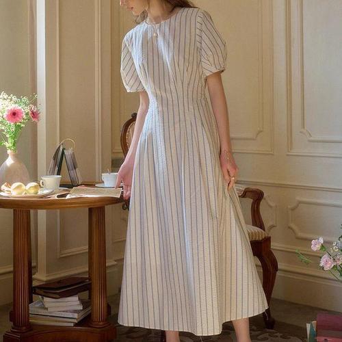[랄라모션]퍼프 스트라이프 롱원피스(llm0412)