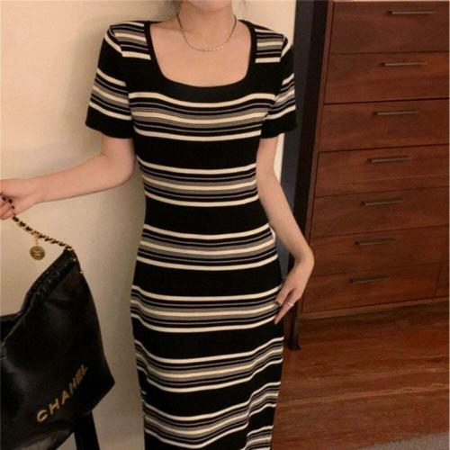 [오너클랜]인기상품 스퀘어넥 반팔 스트라이프 롱원피스 여성 데일리 데이트 캐주얼 의류 [WFLL9NH_260304]
