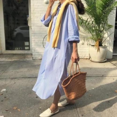 하객룩, 오피스룩, 데일리룩까지! 스트라이프롱원피스로 다양한 스타일을 연출하세요.
