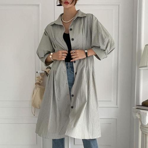 임산부용 스트라이프 셔츠형 롱 원피스 오버핏 박시 데일리룩 집앞