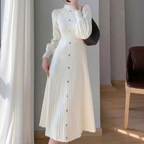 [셀러허브_여성트랜드패션]ONM 니트 롱원피스 세로 스트라이프 버튼디자인 어깨