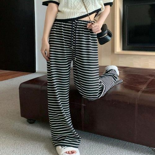 여성 스트라이프 밴딩 와이드 일자 통 바지 잠옷 홈웨어 트레이닝 츄리닝 팬츠 -WPN0507- 봄 여름