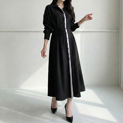 [셀럽하우스]여자 KRKE4819 데일리 편한 베이직 롱 스트라이프 셔츠 원피스