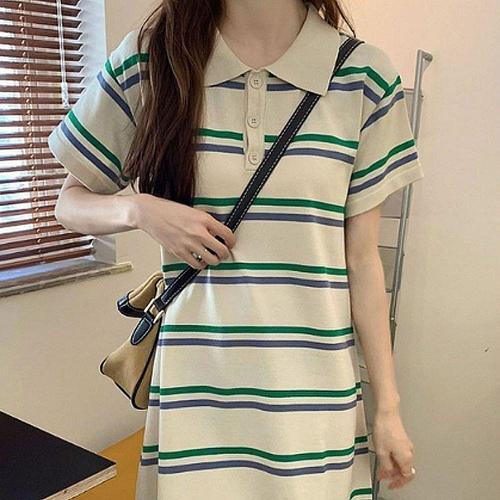 [오너클랜]인기상품 여성 카라 스트라이프 셔츠 미니 원피스 여름룩 [WFJ2B11_260227]