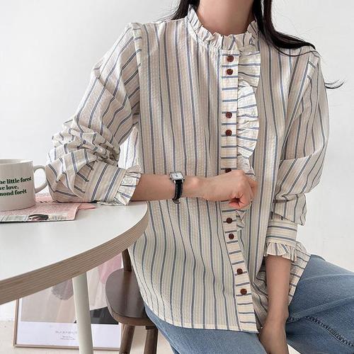 [셀럽하우스]여성 LLRT7796 가을 출근룩 니트매치 루즈핏 스트라이프 셔츠