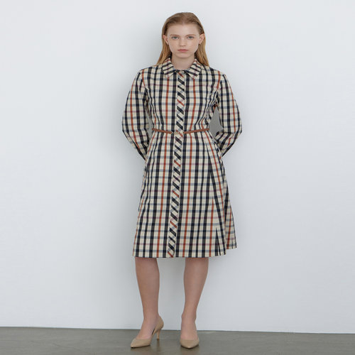 닥스 여성 브라운 하우스체크 벨티드 셔츠형 원피스 (DLDR4DE81W3)