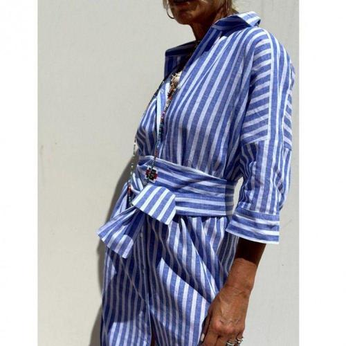 [오너클랜]인기상품 여름용 스트라이프 롱셔츠 원피스 XL 블루 하객룩 드레스 [WFLHV51_260227]