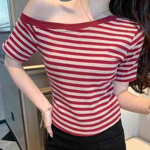 반팔티 오프숄더디자인 레드스트라이프 섹시 오프 WFKPDHM