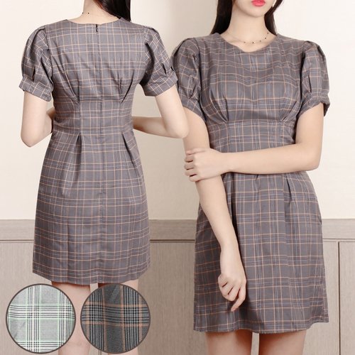 [다잇템_패션]여자 핀턱 SS 단가라 혁대 반소매 롱원피스