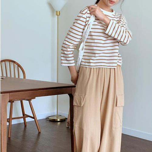 [다잇템]여성 탱크 맨투맨 칠부 줄무늬 FW 티셔츠 (10648813A)