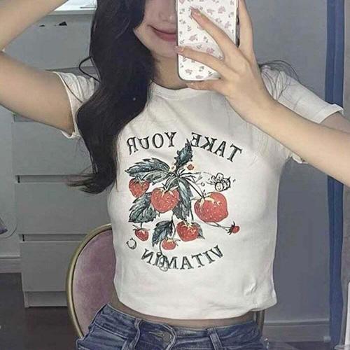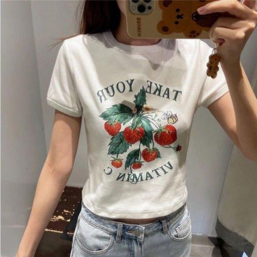 [오너클랜]인기상품 반팔티 배꼽티 귀여운 크롭 프린팅 스트로베리 여자 [WFLDIDF_251230]
