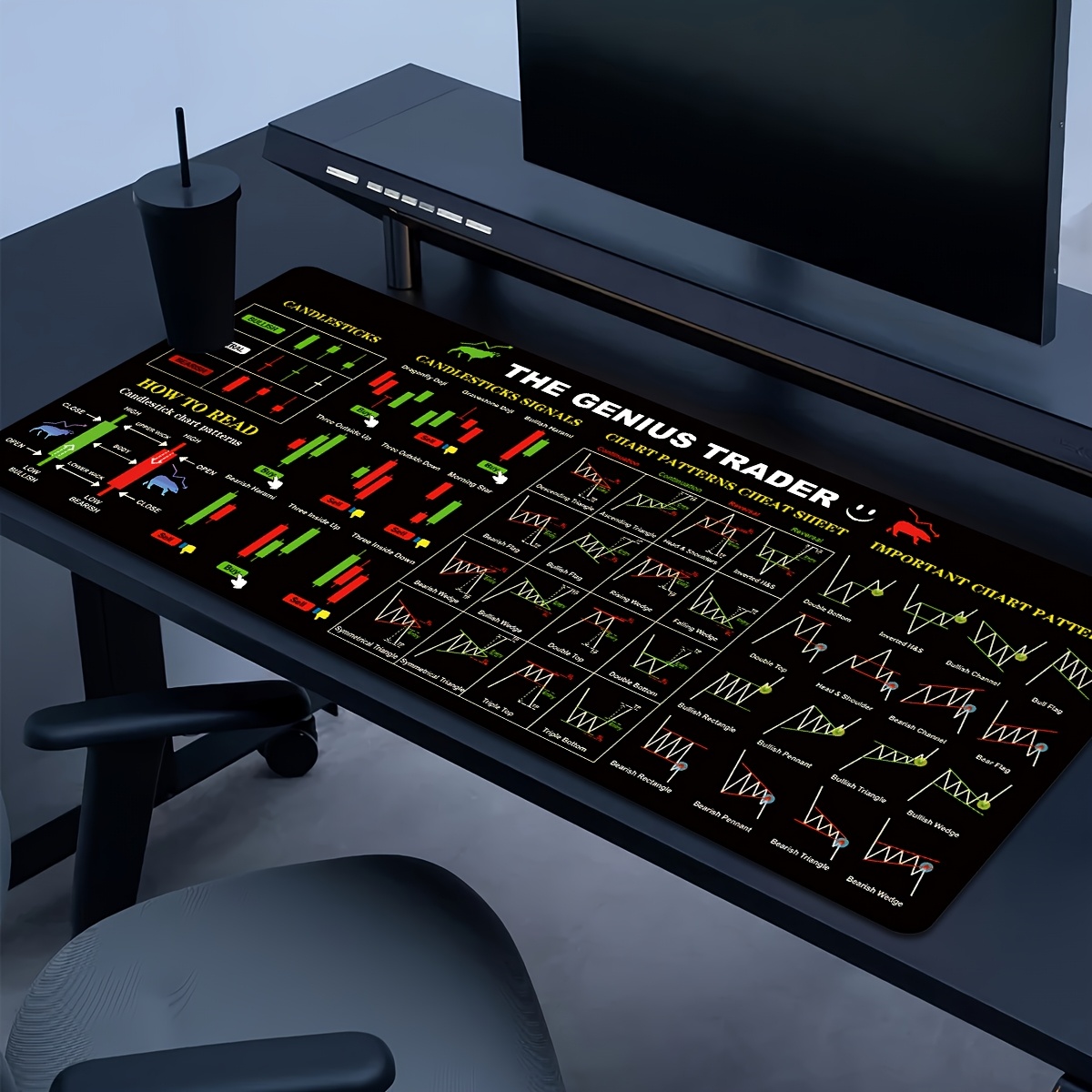 TEMU 대형 블랙 마우스 패드 1개, 주식 트레이딩 캔들스틱 차트 및 차트 패턴 참고용으로 내구성이 뛰어납니다. 노트북 사무실 키보드 매트, 고화질 인쇄 데스크 매트 - 고무 미끄럼 방지 뒷면, 정밀 스티치 엣지, XL XXL - 가정용으로 적합