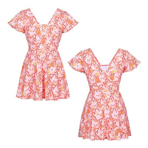 아레나 여자수영복 와일드블룸 3부 반신 U백 수영복 A5FL1LD43_BLK