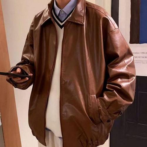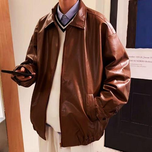 [셀럽하우스]빈티지 UJSQ2869 인조 레더자켓 집업 브라운 남성 오버핏 자켓