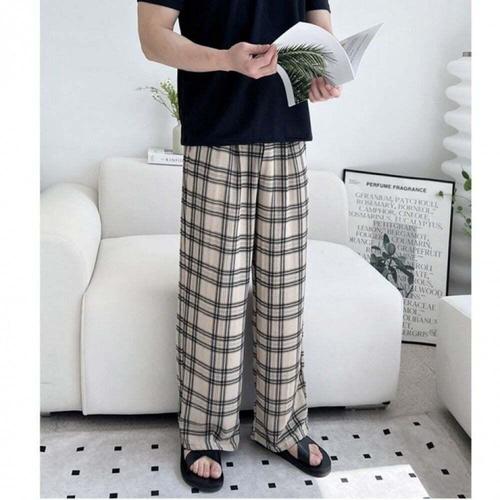 [오너클랜]인기상품 여름용 남성 체크 밴딩 팬츠 와이드핏 핀턱 쿨소재 바지 [WFLMA3T_260129]