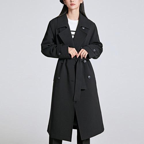 TEMU 남성 클래식 디자인 따뜻한 트렌치코트 노치 라펠 더블브레스트 롱 캐주얼 트위드