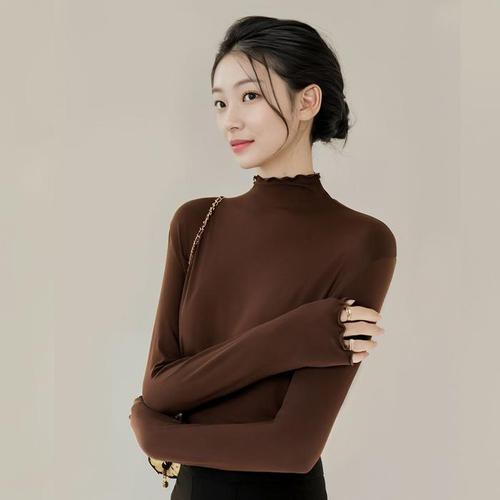 TEMU 가을/겨울 패션 여성용 하이넥 베이스 레이어 솔리드 컬러 긴팔 티셔츠 탑