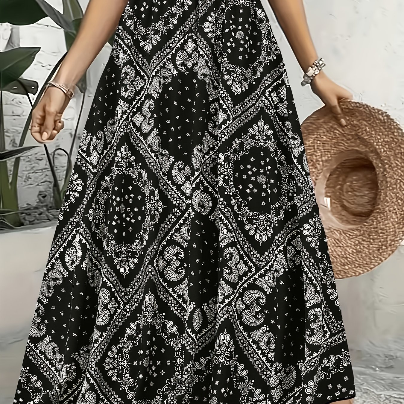TEMU 플러스 사이즈 - 플러스 사이즈 - 플러스 사이즈 여성용 롱 스커트, 허리, 페일시 프린트, 바캉스에 적합