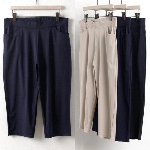 하랑이플 여성 아이스 레이스 7부 9부 부츠컷바지 빅사이즈 쿨팬츠 여름 스판 슬랙스 엄마옷