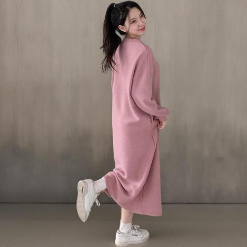 [옷자락] 여성 가을 빅사이즈 골지 라운드 롱스판 원피스