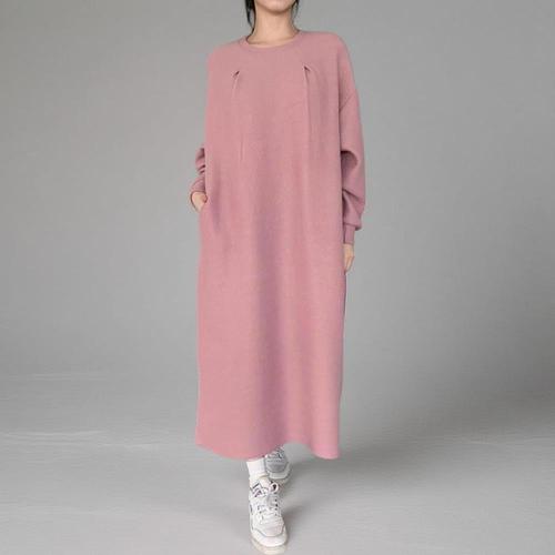 [다잇템]여성 골지 라운드 FW 롱스판 큰사이즈 원피스
