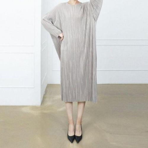 여성 루즈핏 스판 아이스 퍼프 라운드 롱 원피스