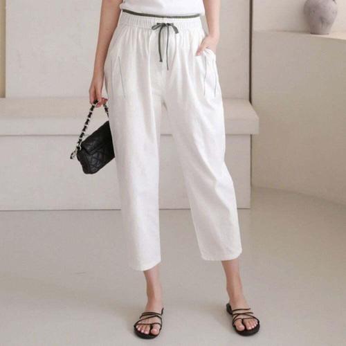 라쉬 여성 슬랙스 린넨 면스판 밴딩 팬츠_9부빅사이즈