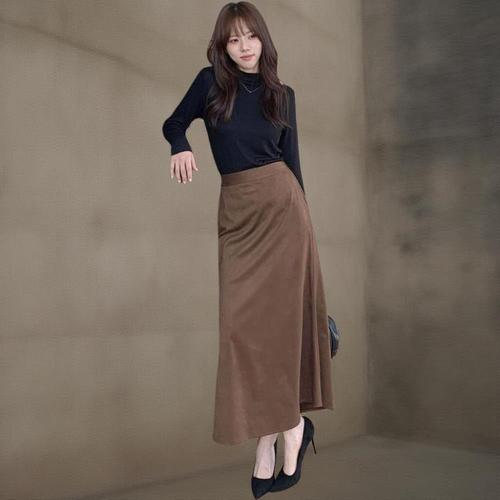 [옷자락]여성 심플 스웨이드 스판 롱 A라인 스커트