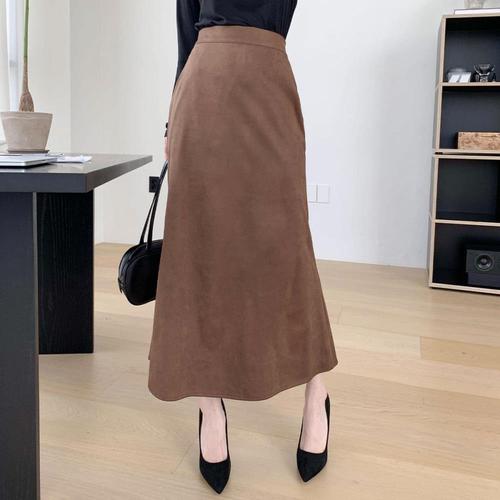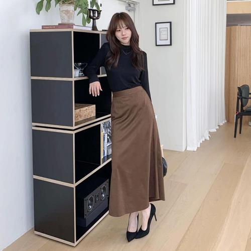 [옷자락]여자 심플 스웨이드 스판 세무 a라인 롱 스커트