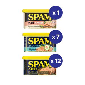 스팸 클래식 200g x12개+라이트 200g x7개+닭가슴살 200g x1개