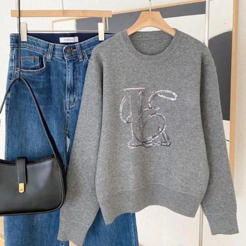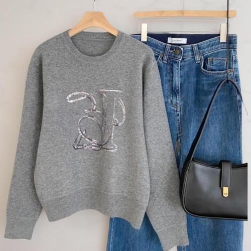 부드러운 회색 스팽글 스웨터 겨울 니트
