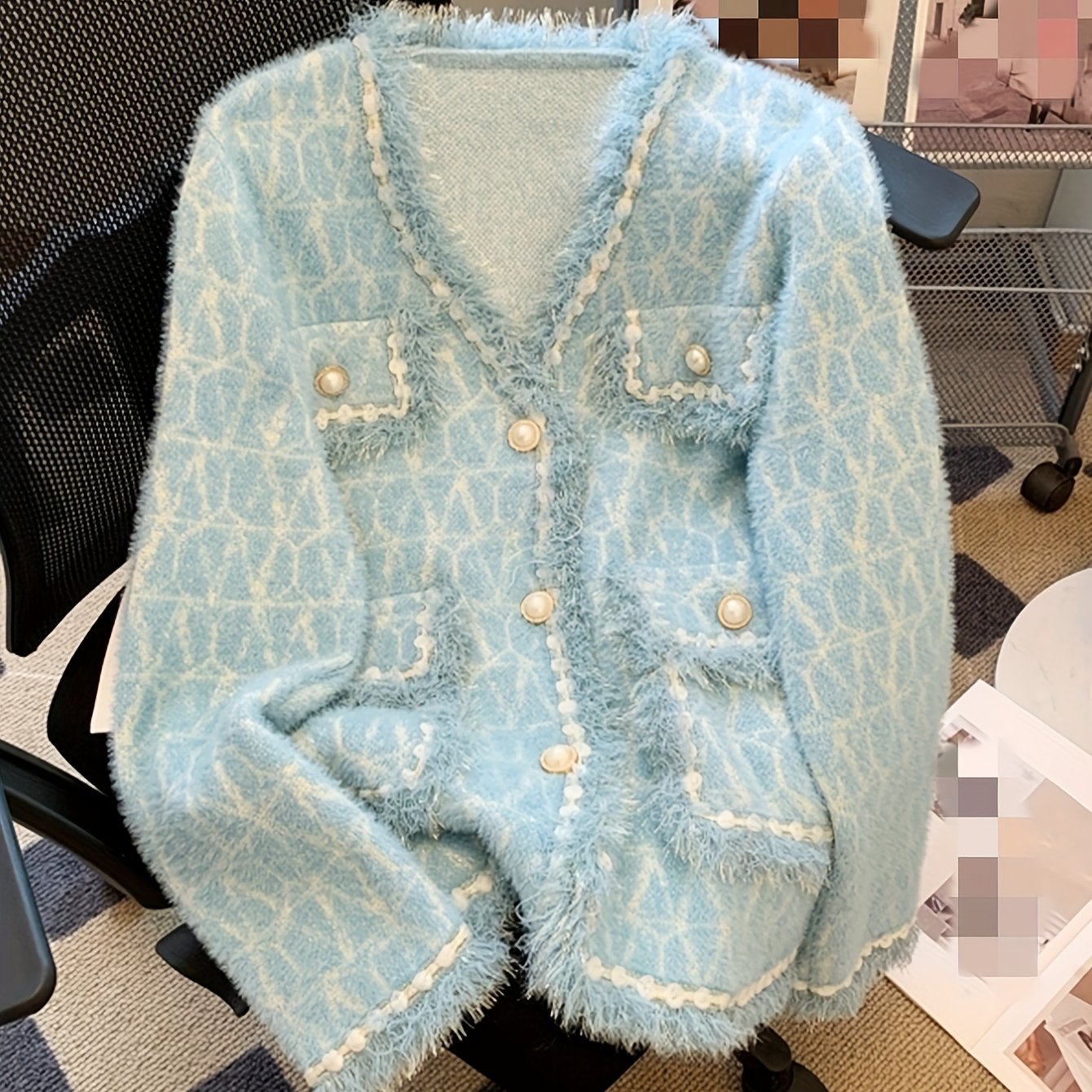 TEMU 유럽 및 미국 스타일의 새로운 우아한 가을/겨울용 작은 향기 바람 태슬 버튼 스웨터 코트