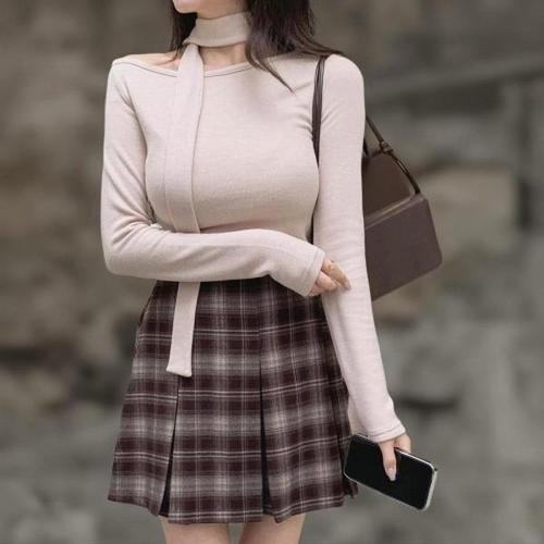 [신상오픈런]|KMD27C1|여성용 슬림핏 기본 무지 긴팔 티셔츠와 머플러 세트_23496854_597559