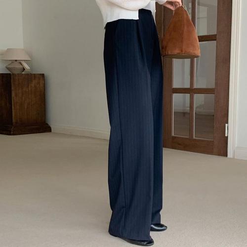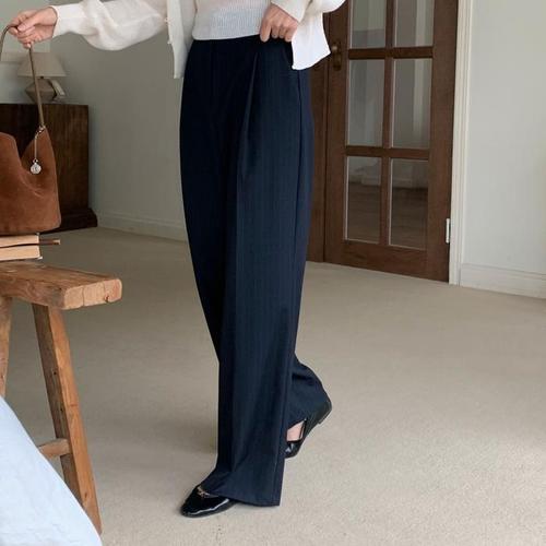 [옷자락]여성 스트라이프 봄 하객 패션 정장 핀턱 와이드 슬랙스