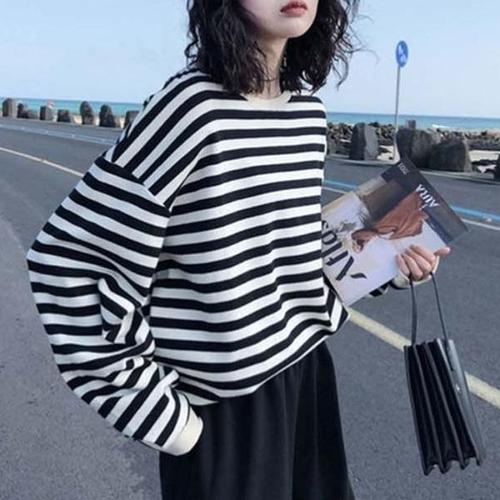 [셀러허브_여성트랜드패션]ONM 오버핏 스트라이프티 줄무늬 여자 루즈핏 캐주얼