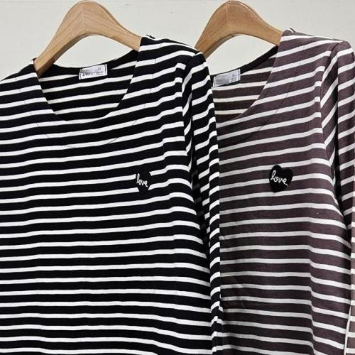 [엄지척]깊은 브이넥 스트라이프긴팔티 스트라이프티 여사친룩_19642796_667501