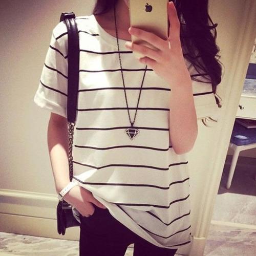 [엄지척]스트라이프 여자 캐주얼 반팔 티셔츠 여름 데일리 티_19555785_667501