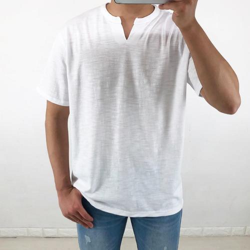 [보스케][보스케] 보스케 남성 여성 여름 무지 V트임 슬라브 반팔 면 티셔츠 (P002743791)
