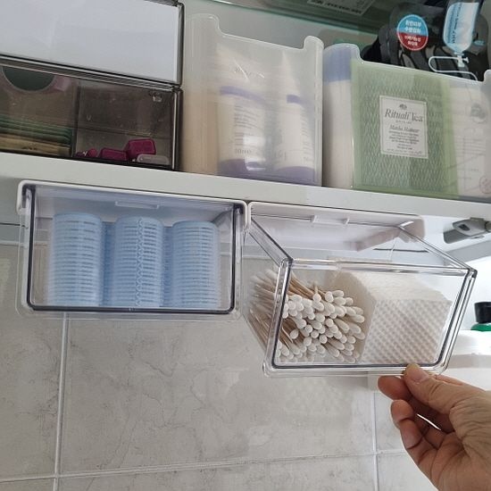 부착식 히든 서랍 슬라이딩 투명 언더서랍 데스크 정리함 욕실장 화장품 수납함