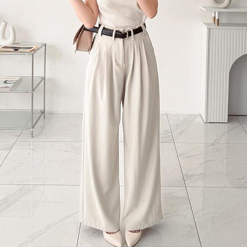 [다잇템]여성 출근룩 혁대 세트 넓은 롱 핀턱 슬랙스