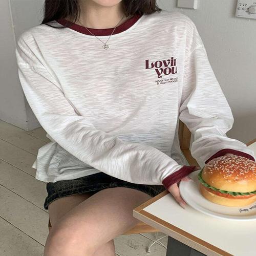 [하젤]부블레 라운드넥 배색 슬럽 롱티셔츠_S4572