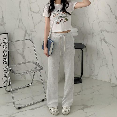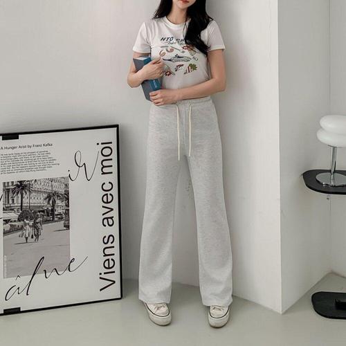 바지 회색 니트 캐주얼 맨투맨 트레이닝 하이웨스트 여자바지 워즈 와이드 스트레이트 슬림핏 슬랙스 면~