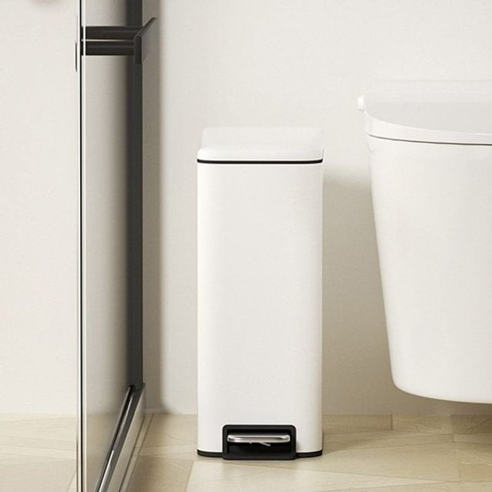 엄지척 화이트스틸 무소음 욕실 슬림 페달 공부방 휴지통10L
