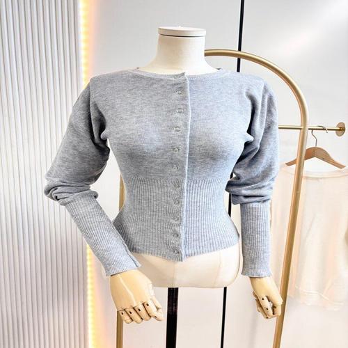 샵앤) 여성 페미닌 슬림 넥라인 골지 니트 가디건 NYS-WCD-4802-그레이